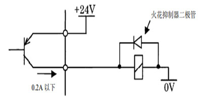 直接向繼電器、電磁閥類施加負載時,應(yīng)將防反電動勢二極管與負載并聯(lián)連接起來。