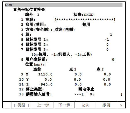 5. 不是DCS的頂層畫面或者直角坐標位置檢查畫面的情況下,按下[PREV]鍵,選擇[直角坐標位置檢查]。