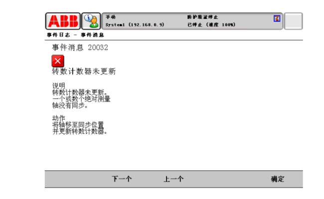 ABB機器人維修報警代碼20032(轉(zhuǎn)數(shù)計數(shù)器未更新)