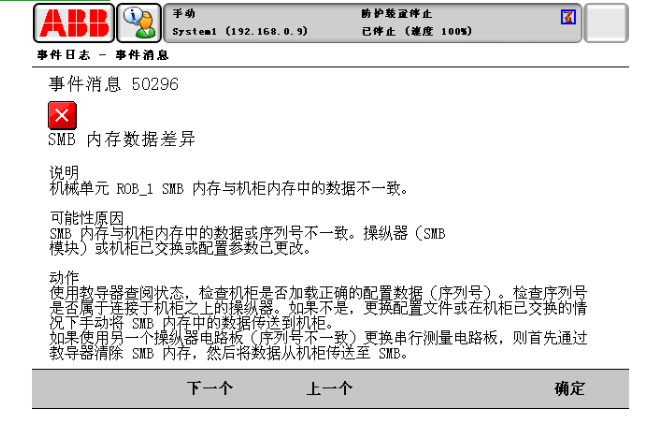 abb機(jī)器人維修 報(bào)警代碼:50296(SMB內(nèi)存數(shù)據(jù)差異)